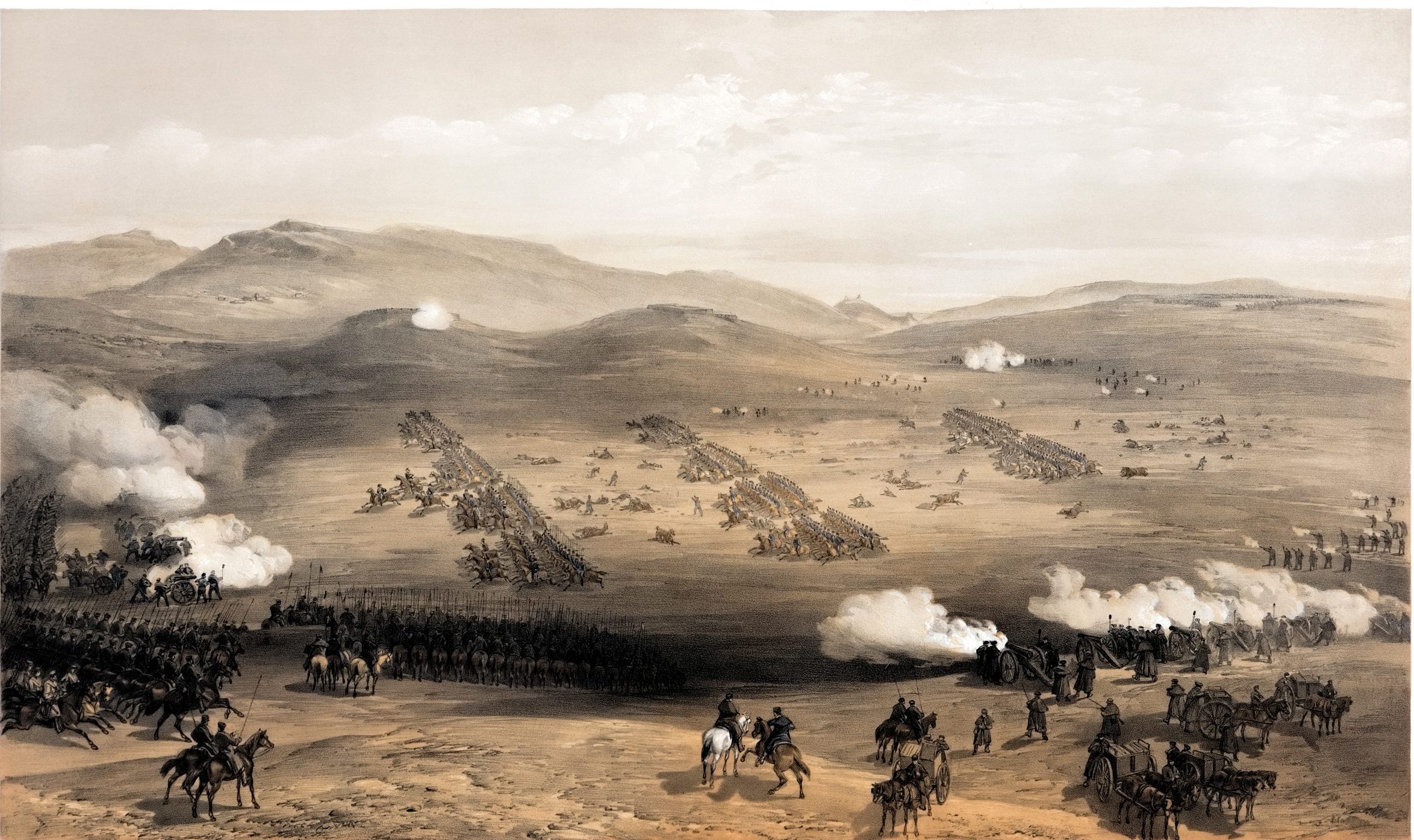Настала страшная осень 1854 года с жестокими битвами под Балаклавой и Инкерманом, с первыми бомбардировками Севастополя. Дипломатия бездействовала. Союзники с беспокойством следили за неожиданно затягивающейся осадой Севастополя, сдачи которого ожидали через несколько дней после высадки. Между тем экспедиционный корпус в Крыму рос не только за счет англичан и французов, которые доставляли туда все больше войск, лошадей и пушек, но и за счет турецких вассалов: в Крым привезли наемников из Монтенегро, Хорватии, Месопотамии. Что же касается русских солдат и матросов, то им пришлось на протяжении более 11 месяцев в борьбе с численно превосходящим противником отстаивать Севастополь.